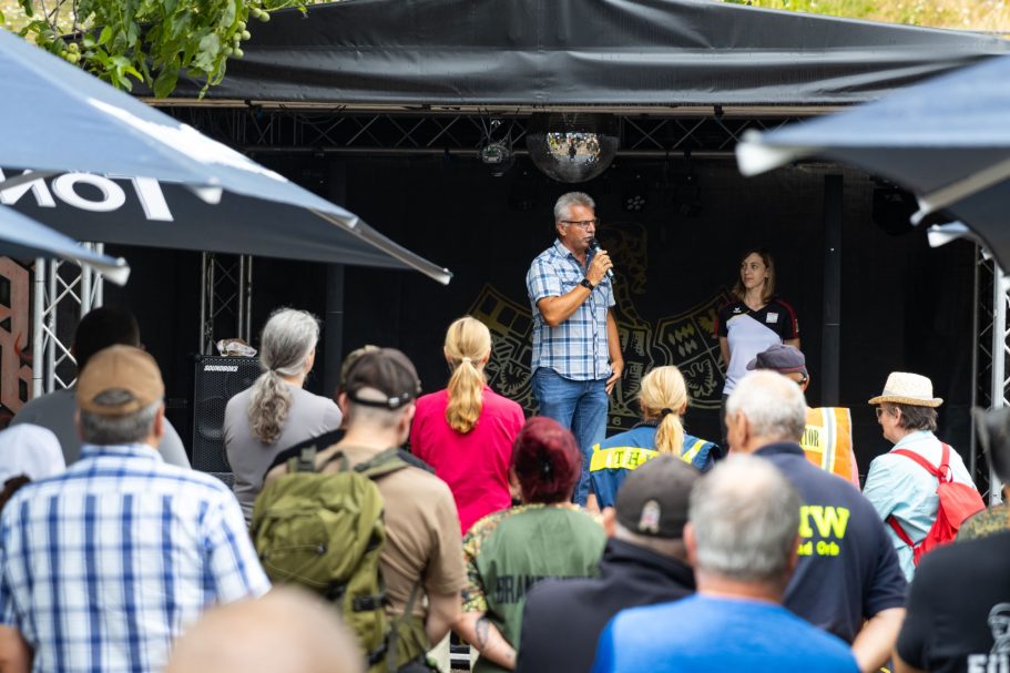 Nachdem sich der Regen legte, eröffnete Sandra Schmidt gegen 11 Uhr mit einer Ansprache die Veranstaltung. Der Verein Fluthilfe-Ahr e.V., welcher an diesem Tag die eingehenden Spenden erhielt, wurde durch das Gründungsmitglied Jürgen Schick vorgestellt.