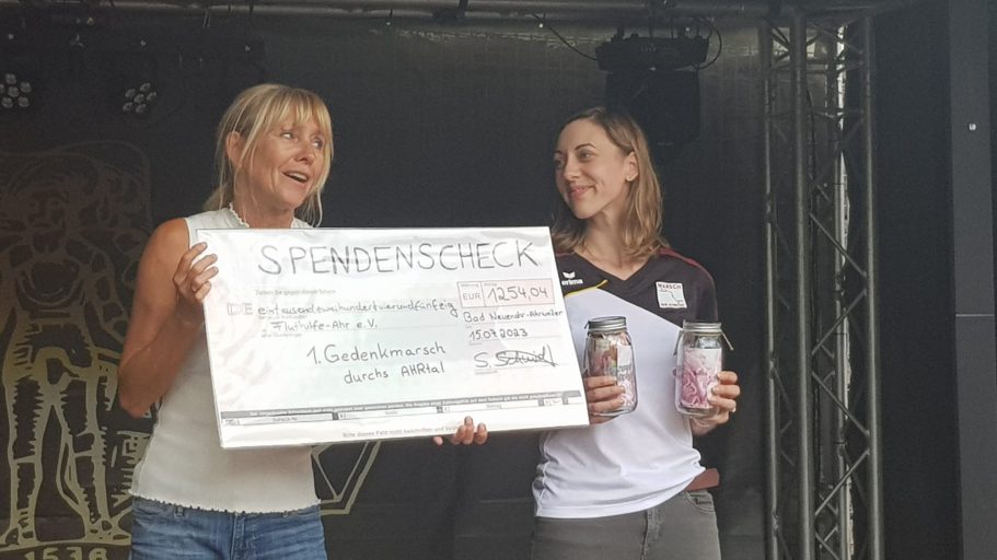 Die erzielte Spendensumme in Höhe von insgesamt 1254,04 € wurde zum Schluss der Veranstaltung von Sandra persönlich an den Verein Fluthilfe-Ahr e.V. überreicht.