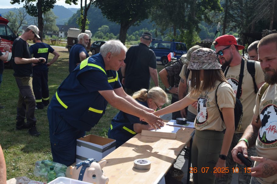 Auch 2025 war der Gedenkmarsch weit mehr als nur eine Wanderung. Anlässlich des vierten Jahrestages der verheerenden Flutkatastrophe, bei der in der Nacht vom 14. auf den 15. Juli 2021 insgesamt 135 Menschen ihr Leben verloren, versammelten sich 123 engagierte Teilnehmerinnen und Teilnehmer aus ganz Deutschland in Insul. Darunter befanden sich Soldatinnen und Soldaten, Reservisten, Mitglieder der Feuerwehr und des THW sowie zahlreiche zivile Unterstützer – viele von ihnen waren bereits damals als Helfer vor Ort im Einsatz.