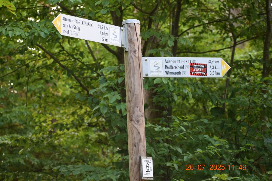 Der rund 15 Kilometer lange Rundweg führte vom Sportplatz in Insul entlang der beeindruckenden Steilwand mit Blick auf Schuld, vorbei am Verpflegungs- und Sanitätsstützpunkt an der Kapelle, entlang der alten Eisenbahnbrücke in Dümpelfeld und schließlich zurück zum Ausgangspunkt. Am Ziel erhielt jede Teilnehmerin und jeder Teilnehmer eine Urkunde. Wer mochte, konnte darüber hinaus gegen eine freiwillige Spende ab 10 Euro ein Patch als Zeichen der Anerkennung erwerben.